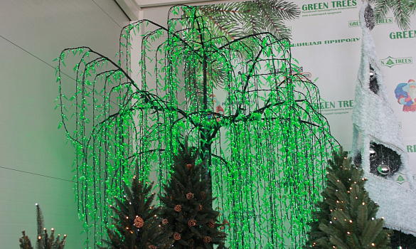 Под открытым небом вы сможете посмотреть более 10 моделей больших уличных елок вплоть до 23 метров в высоту. Это уникальная для России экспозиция, в которой общая стоимость выставленной продукции составляет более 15 миллионов рублей.