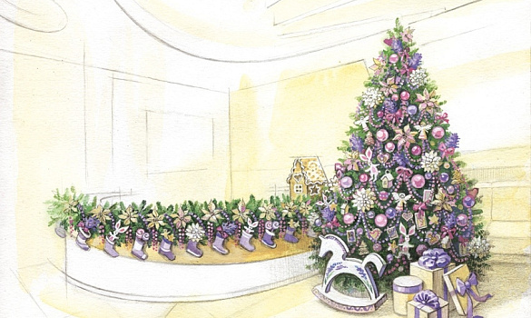 Дизайнер разрабатывает предварительный эскиз с элементами оформления